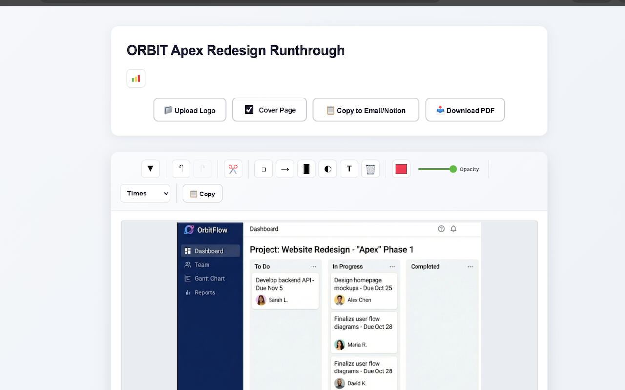 Create professional step-by-step documentation for any web-based workflow. Runthrough captures screenshots as you work and provides annotation tools to create clear guides.